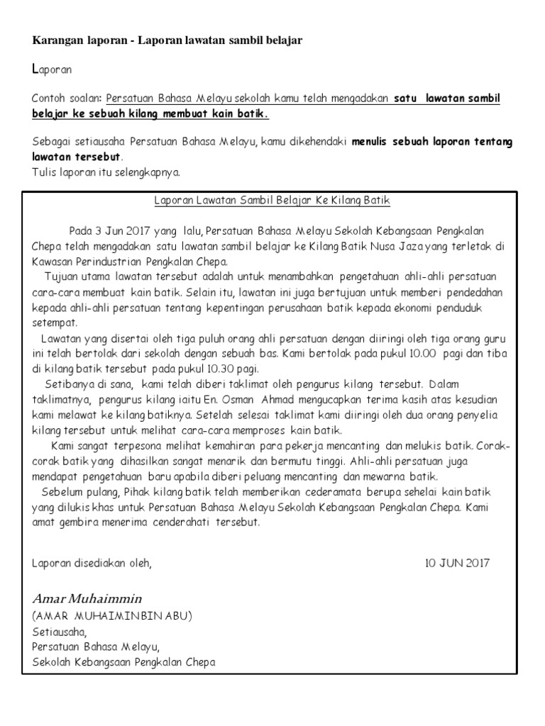 Related Posts To Contoh Karangan Laporan Bahasa Melayu Tingkatan 1 Contoh Karangan Laporan Bahasa Melayu Tingkatan 1 2018-05-17T091900-0700 Rating. Karangan Laporan Karangan Spm Laporan Pdf Contoh Karangan Laporan Spm Bahasa Inggeris Contoh Now Otosection Karangan Laporan Share. Bahasa Melayu BM Gradelevel.